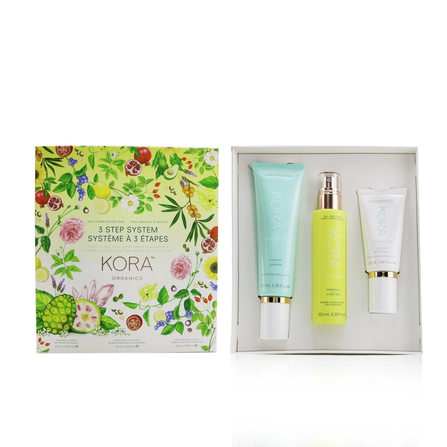 3 Step System – Oily/Combination Skin: 1x Foaming Cleanser 100ml/3.38oz 1x Energizing Citrus Mist 100ml/3.38oz 1x Purifying Moisturizer 50ml/1.69oz Ideal both for personal use & as a gift